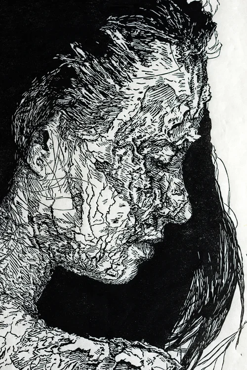 “Rainy Day” 2019. 4’x3’ woodblock print.