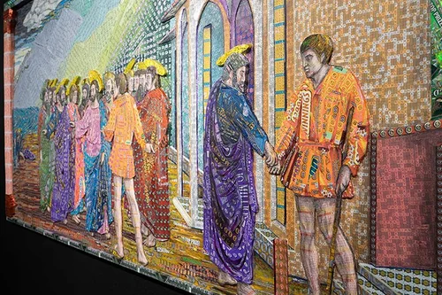 “Gratuity” 2020. 4’x3’ Linoleum Print.